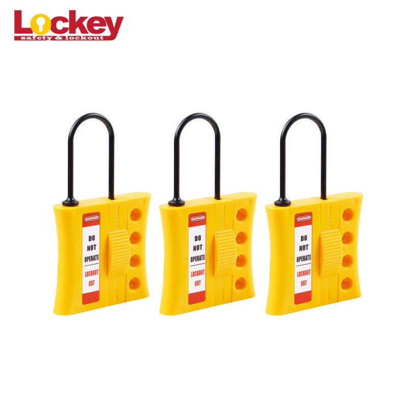 Fabrica direta 3mm ABS Nylon Lockout Hasp Segurança 4 fechaduras Amarelo Mestre